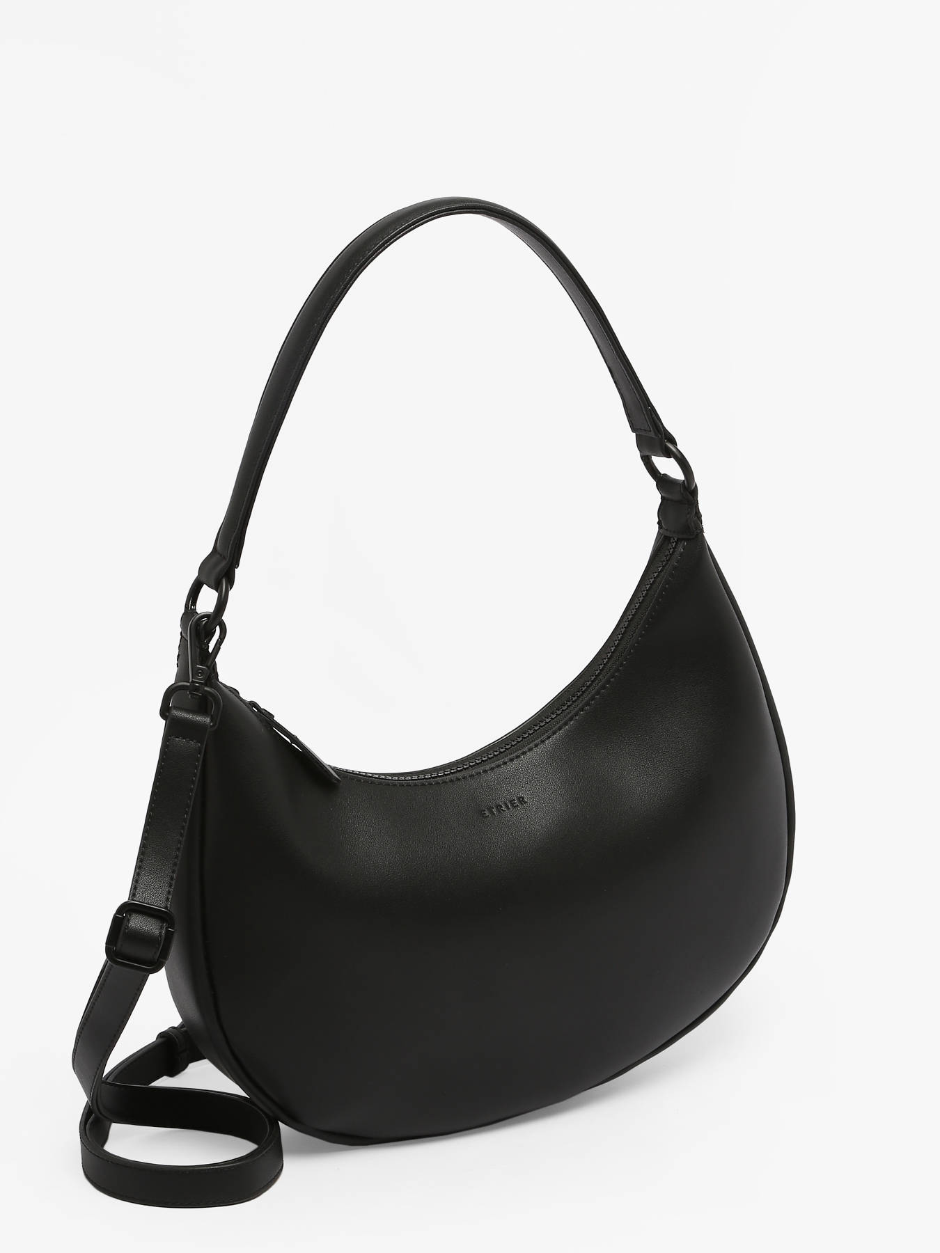 Le sac porté épaule ETRIER de la ligne OXER, au format demi-lune, opte pour le cuir retourné, apportant ainsi rondeur et douceur à son design. Conçu en cuir de vachette, il intègre une poche au dos et se ferme par une glissière. Sa anse en cuir et sa bandoulière réglable et amovible offrent des options polyvalentes de porté : en bandoulière ou à l'épaule. L'intérieur spacieux comprend un compartiment avec deux poches plaquées et une poche zippée pour une organisation optimale.